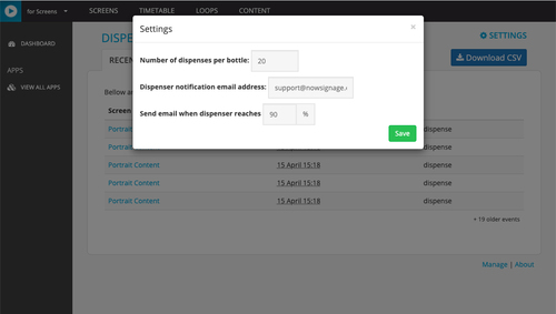 An app that is now part of the company’s CMS suite sends automatic notifications when a  dispenser is running low on the sanitizer solution. Usage data can also be downloaded, which helps predict the frequency of refills, and also shows where the station gets the most use, if it is moved around.
