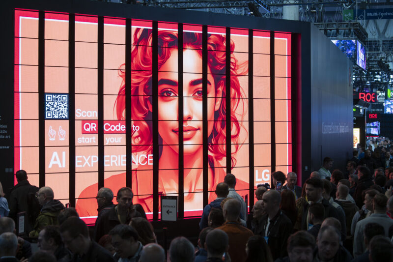 I’m always curious what LG comes up with as the showstopper feature at the gateway to its ISE stand. It tends to be someone else’s technology – like kinetic LED walls – that is almost entirely there just to get attendees to stop and look. And that works.