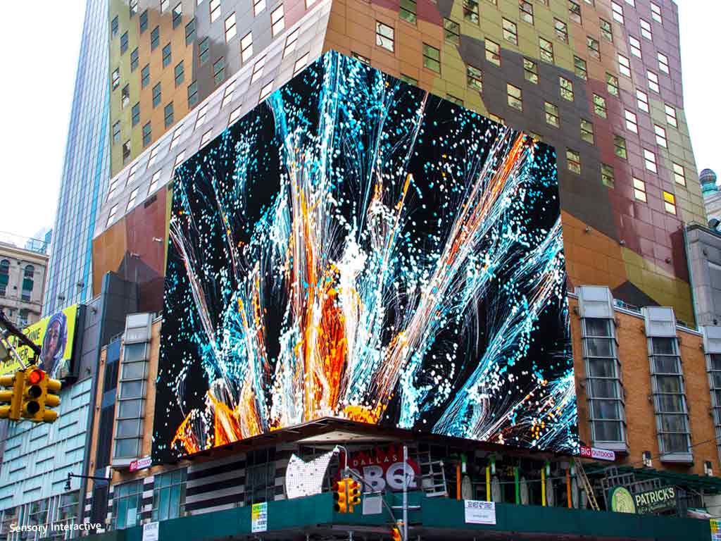 Sensory Interactive supported project development on behalf of Tishman, while New York-based sign company North Shore Neon handled installation, reusing and reinforcing existing infrastructure where possible. SNA Displays fabricated 49 custom subframe sections to accommodate the building’s structure. Analog Way Aquilon processors were deployed to manage content across the large-format display.